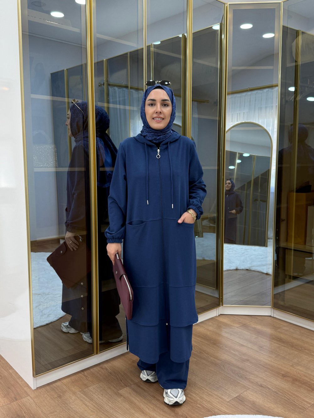 Aller Detaylı Kapüşonlu İkili Takım İndigo