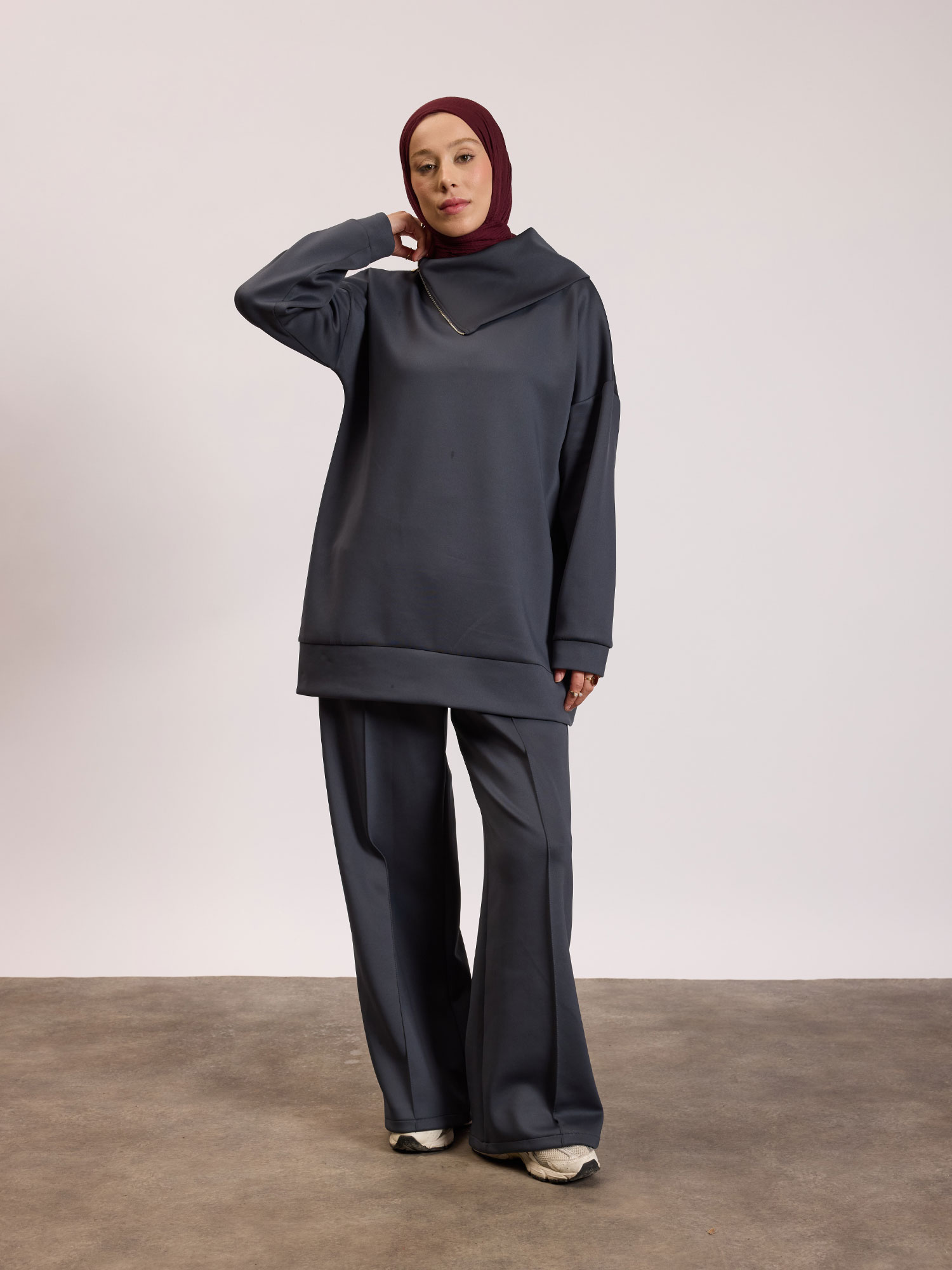 Omuz kısmı metal dişli fermuar detaylıdır.