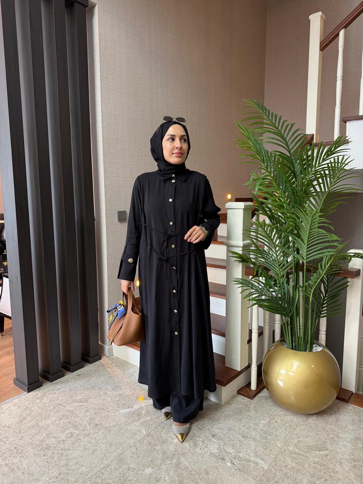 Bağlama Detay Maxi Boy Takım Siyah