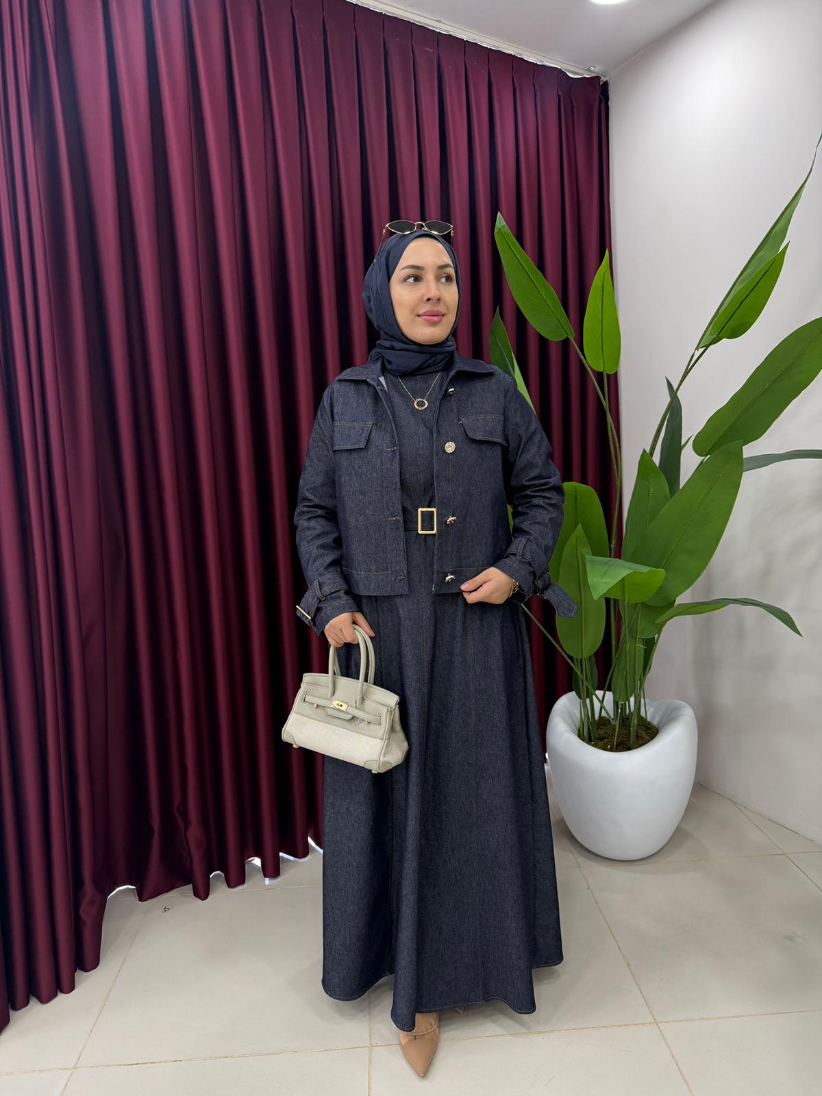 Ceketli Kot Elbise Lacivert