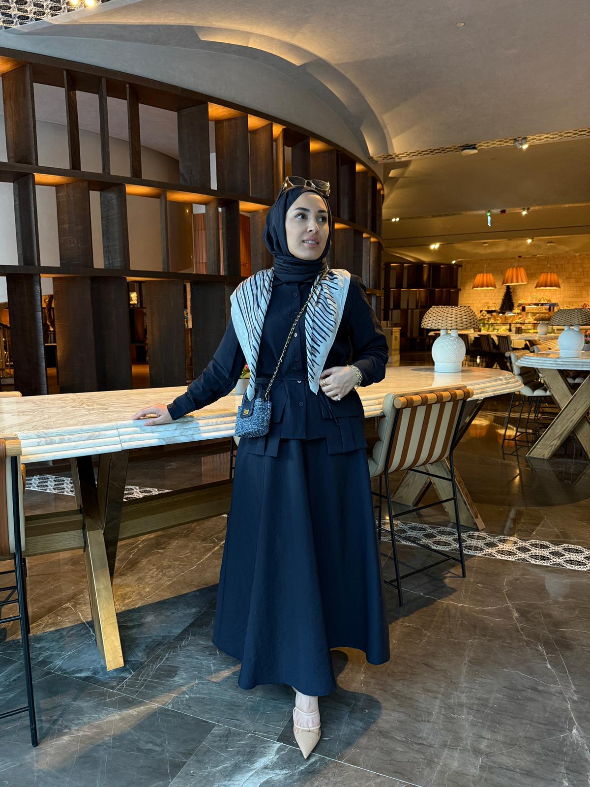 Cep Detaylı Cupra Etekli Takım Lacivert
