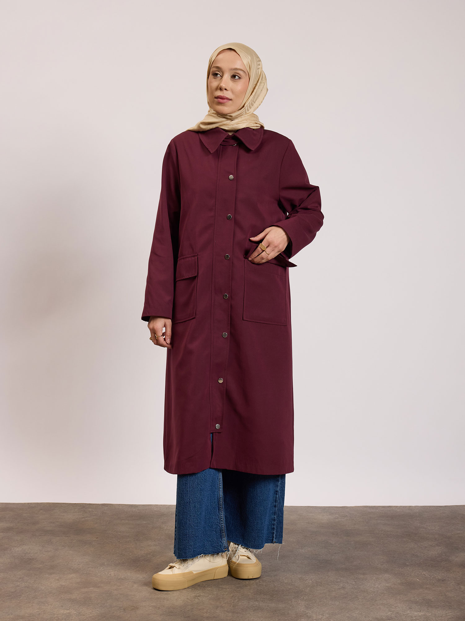 Çıtçıtlı Detaylı Parka Trençkot Bordo