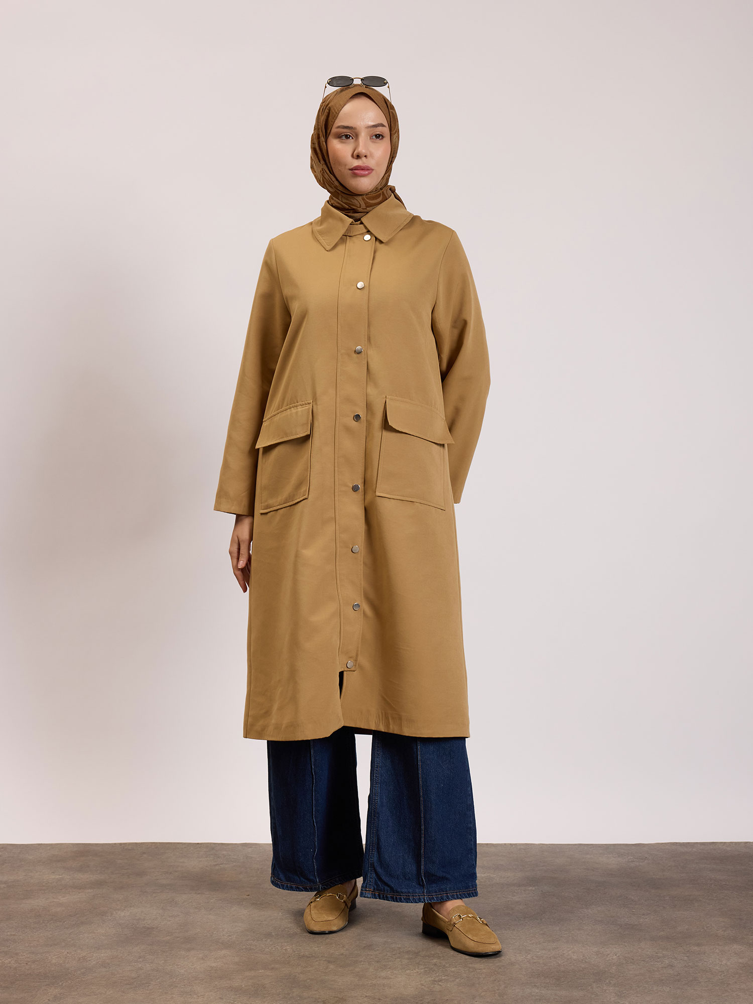 Çıtçıtlı Detaylı Parka Trençkot Camel