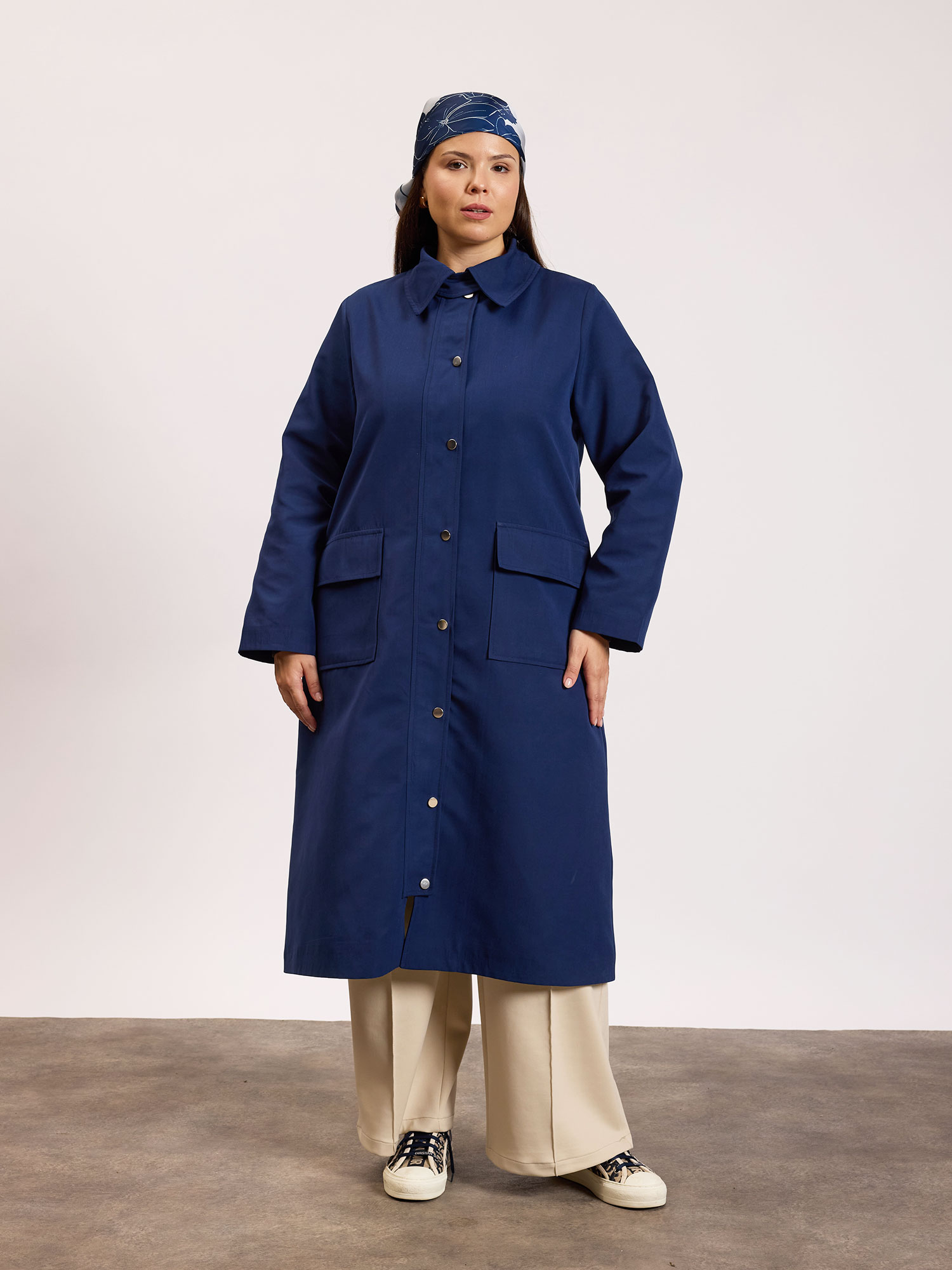 Çıtçıtlı Detaylı Parka Trençkot Lacivert