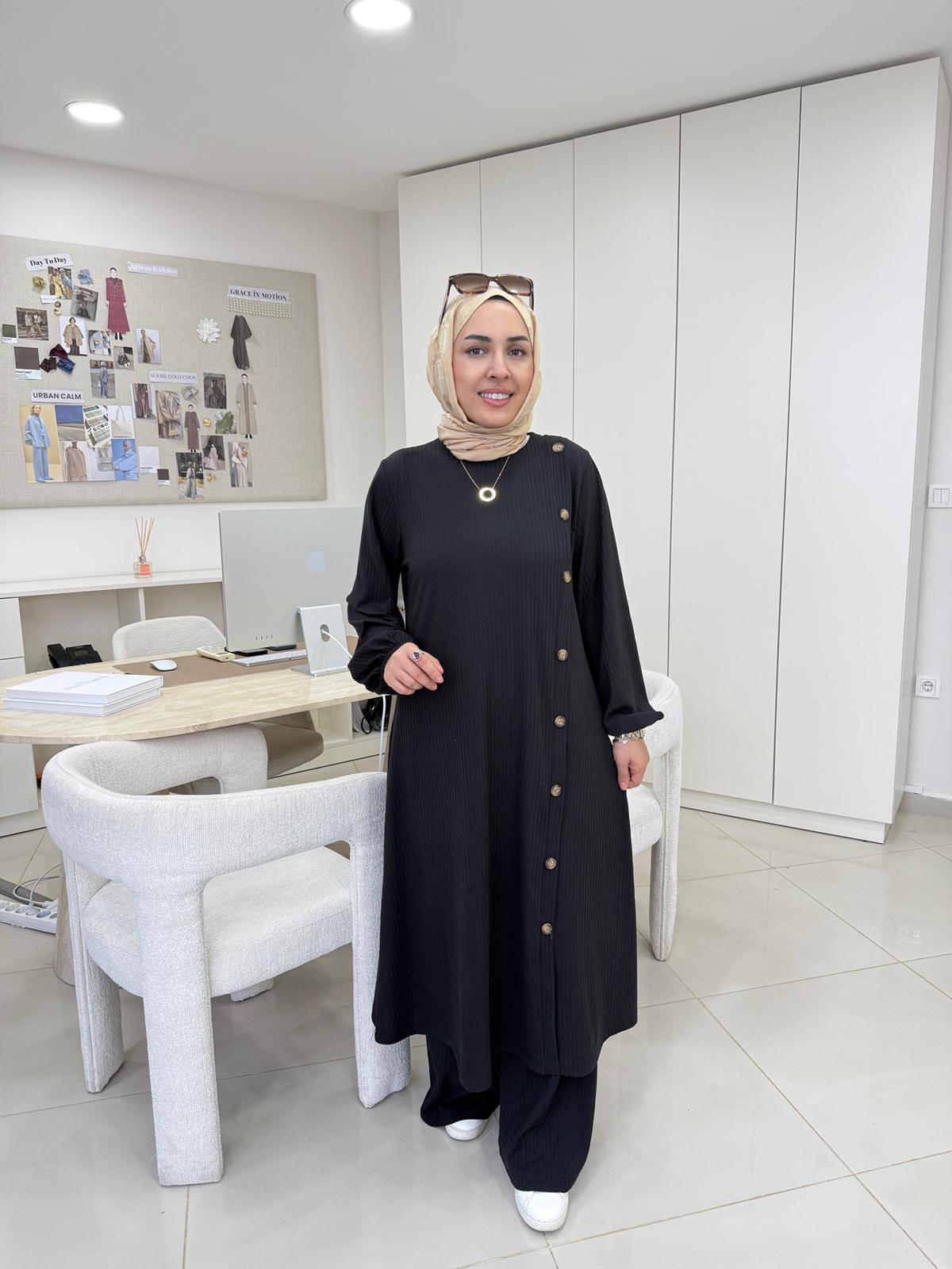 Çubuk Düğme Detaylı Takım Siyah
