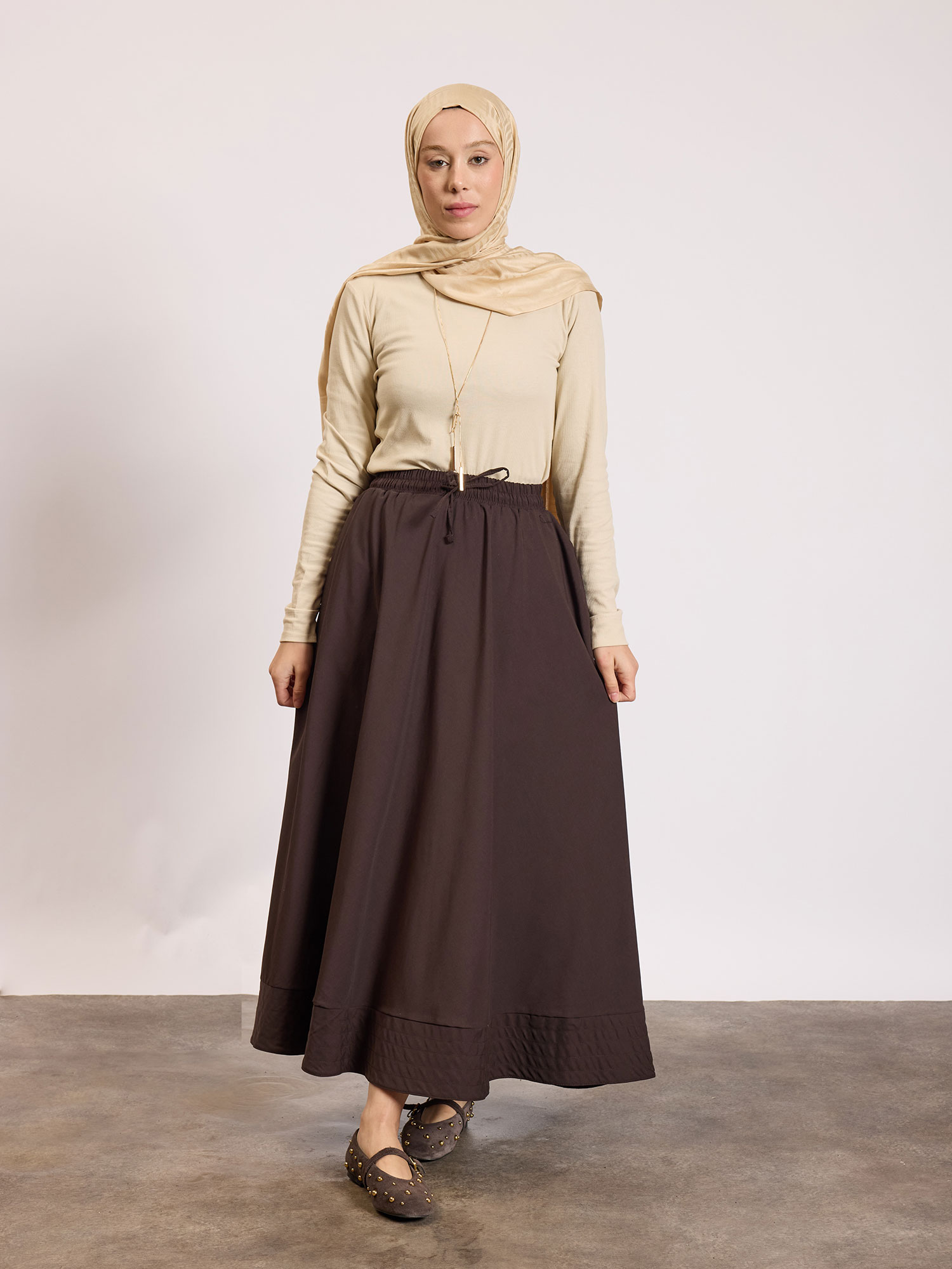 Dikiş Detaylı Beli Lastikli Etek Kahverengi