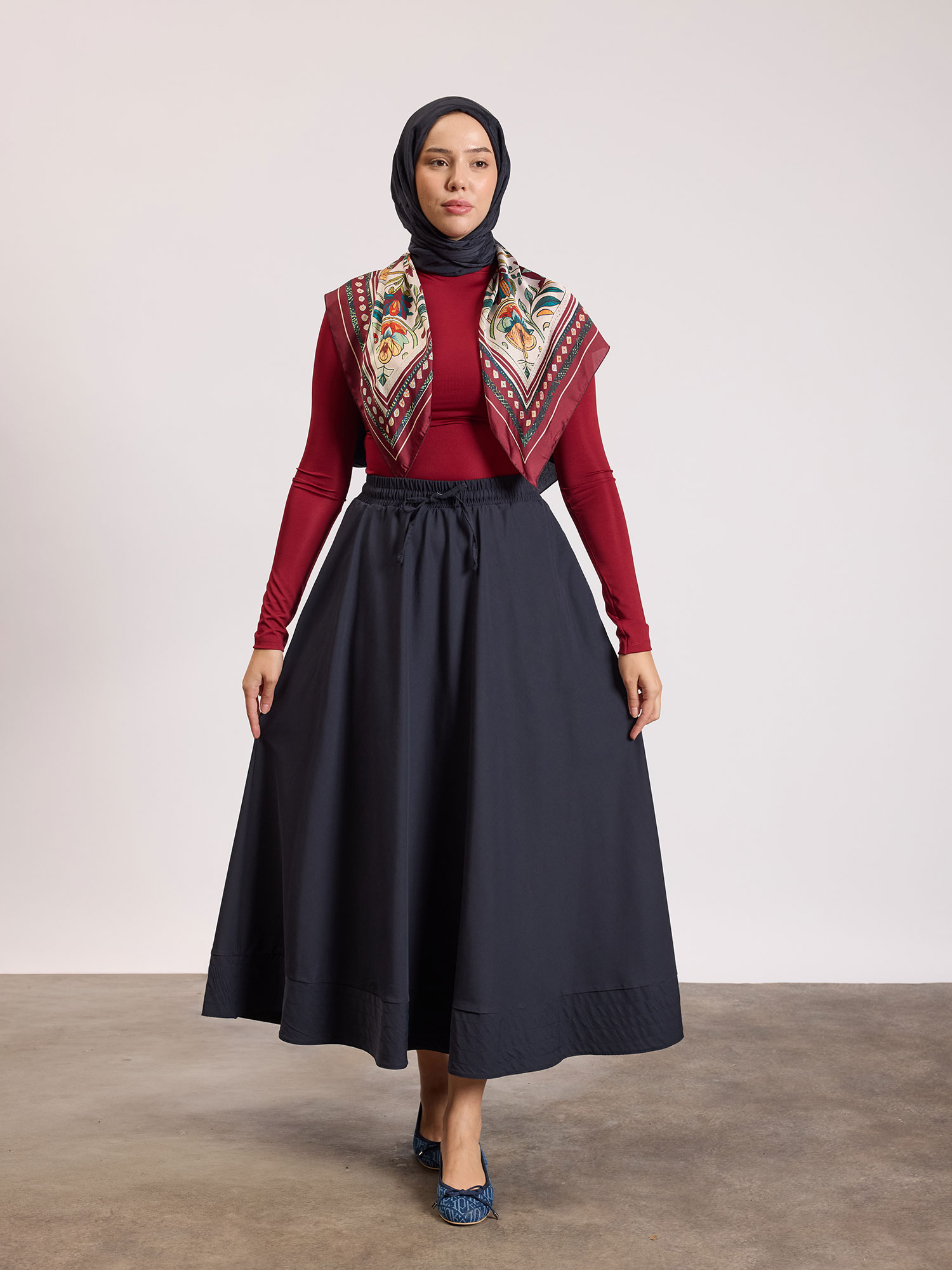 Dikiş Detaylı Beli Lastikli Etek Lacivert
