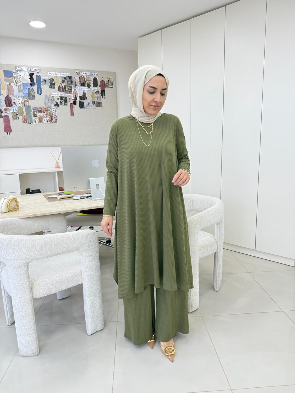 Tunik boy 100 cm, yanlar 110 cm’dir.