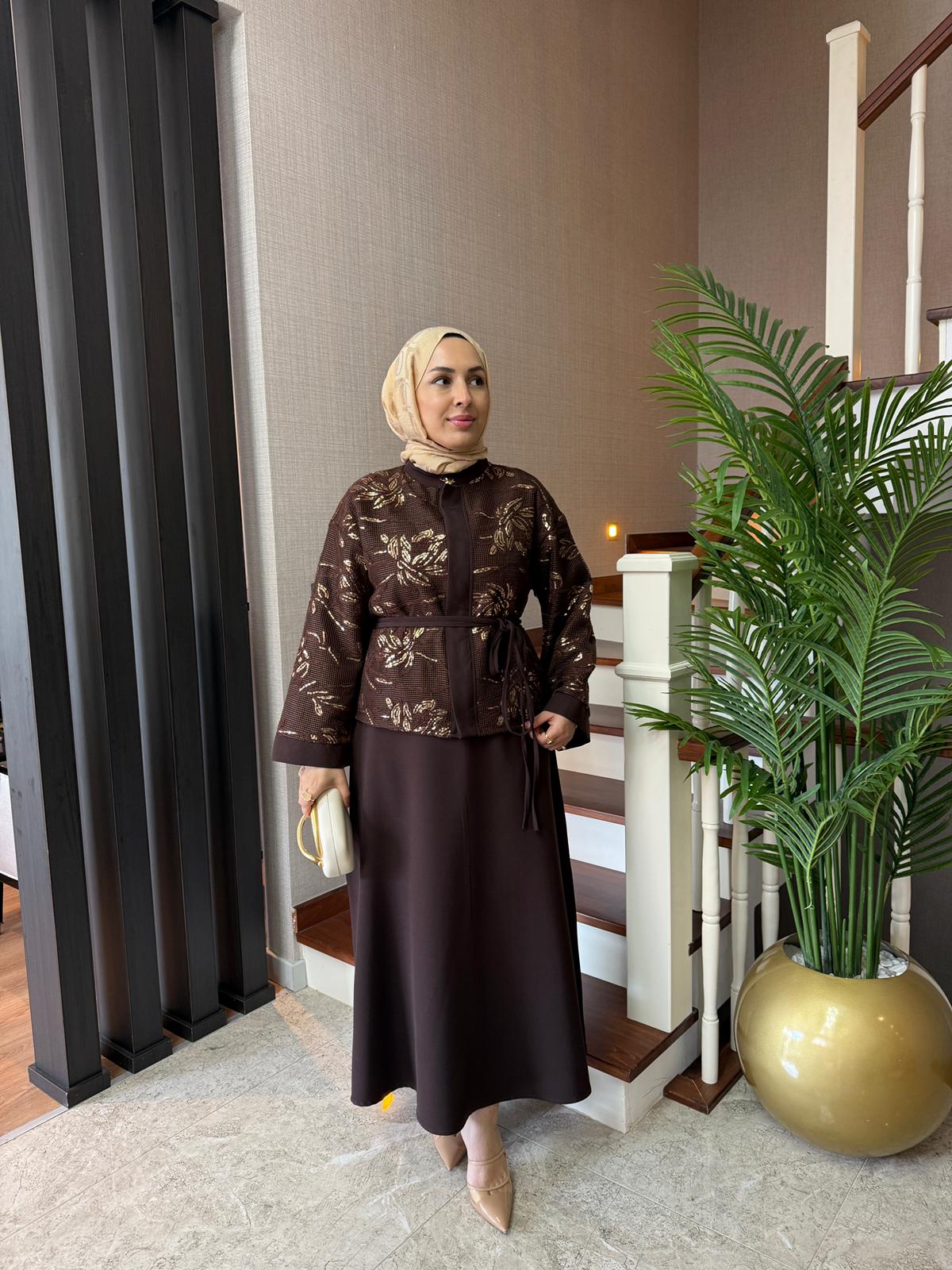 File Payet Etekli Takım Kahverengi