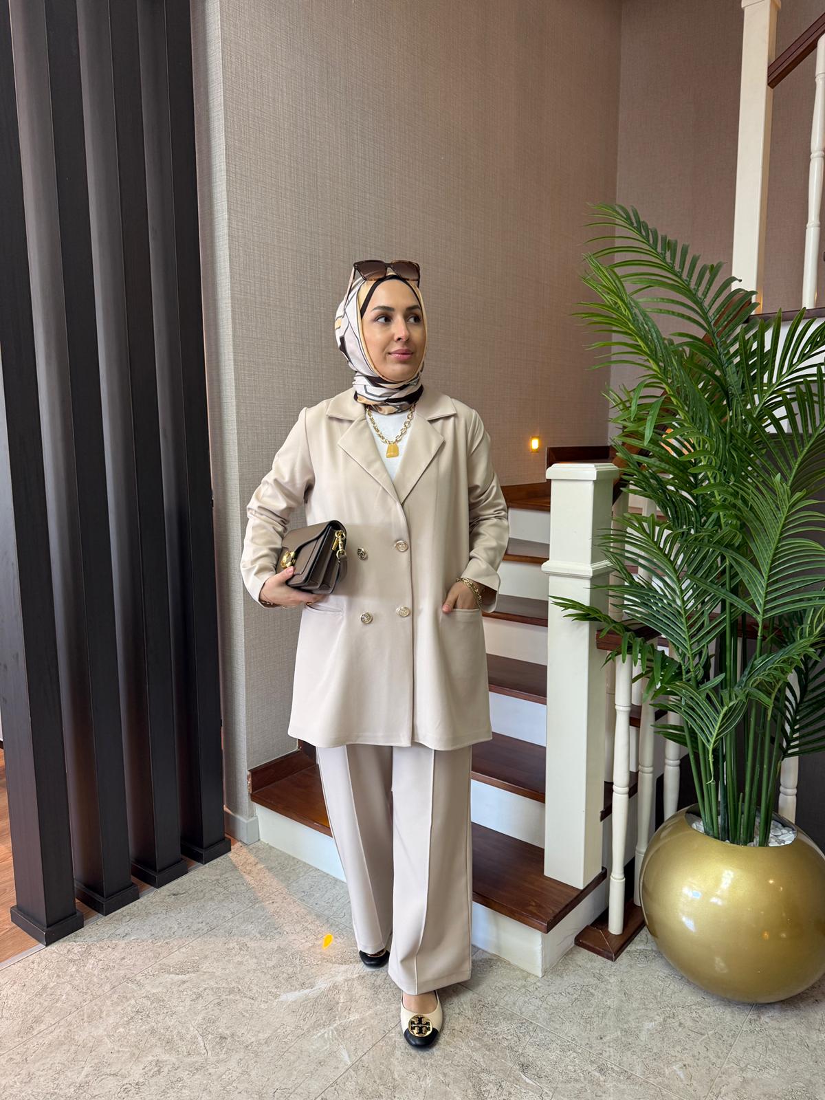 Gold Düğmeli Ceket Takım Bej