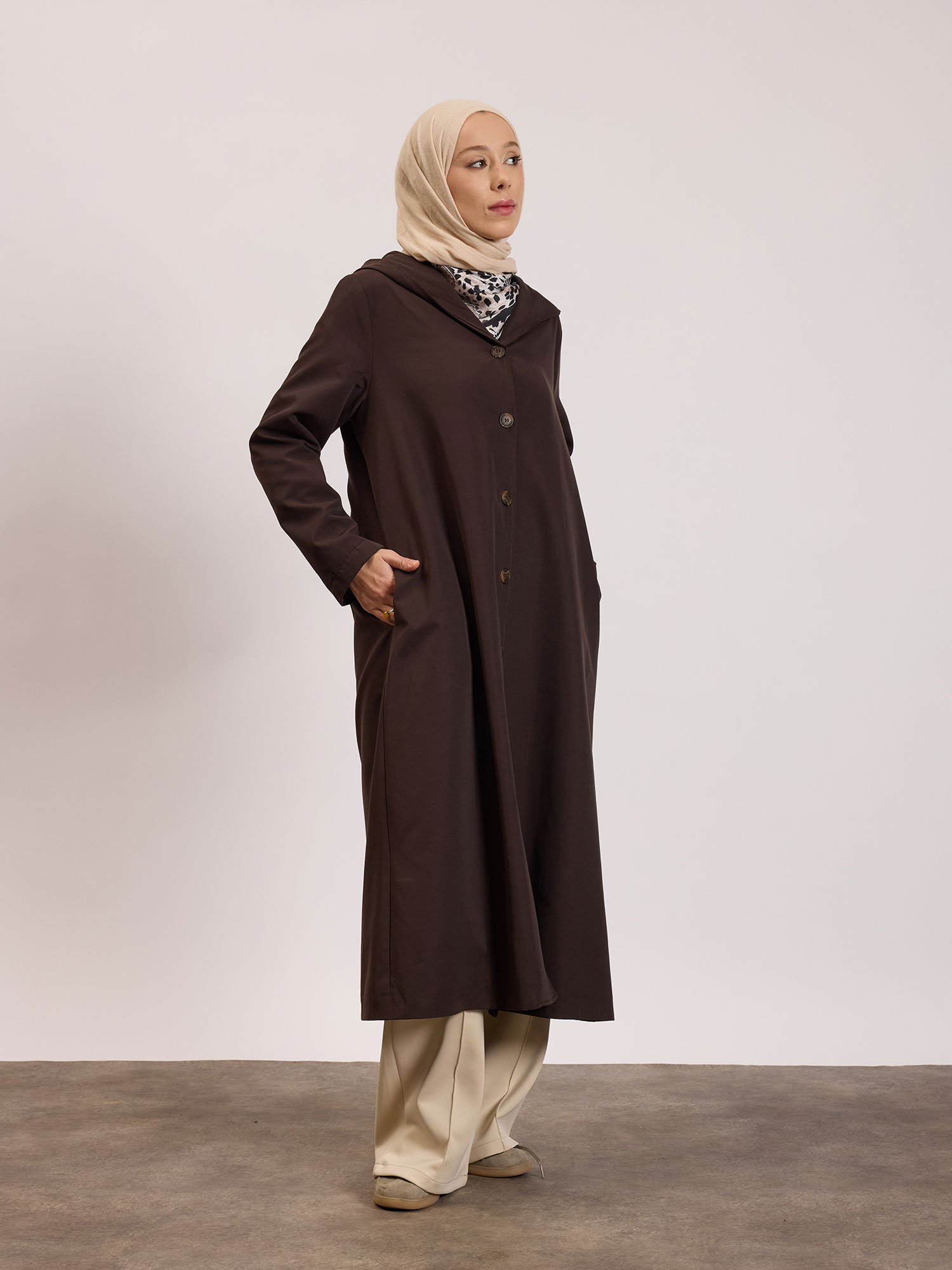 Kapüşonlu Astarlı Trençkot Acı Kahve