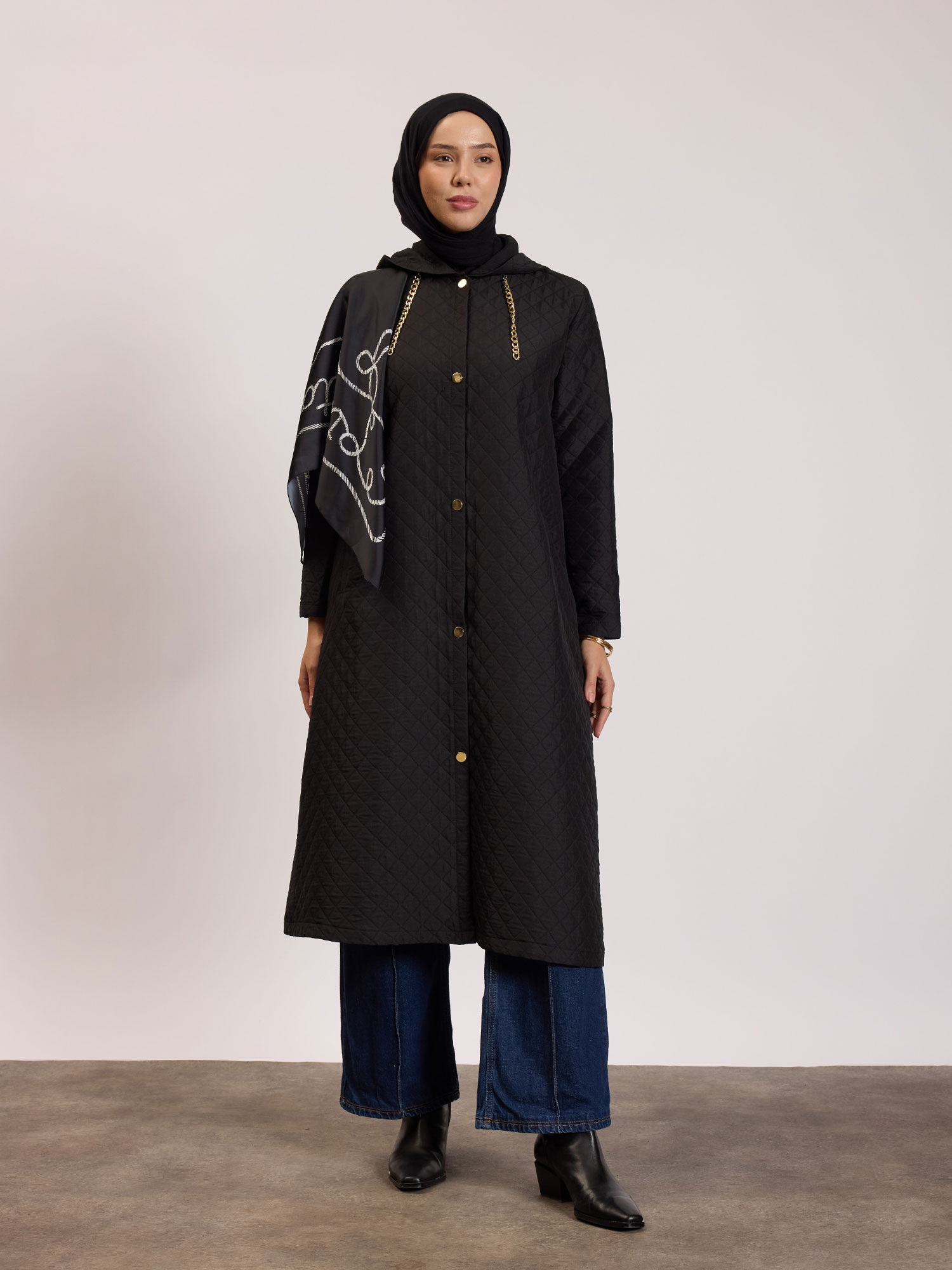 Kapüşonlu Capitone Mont Siyah