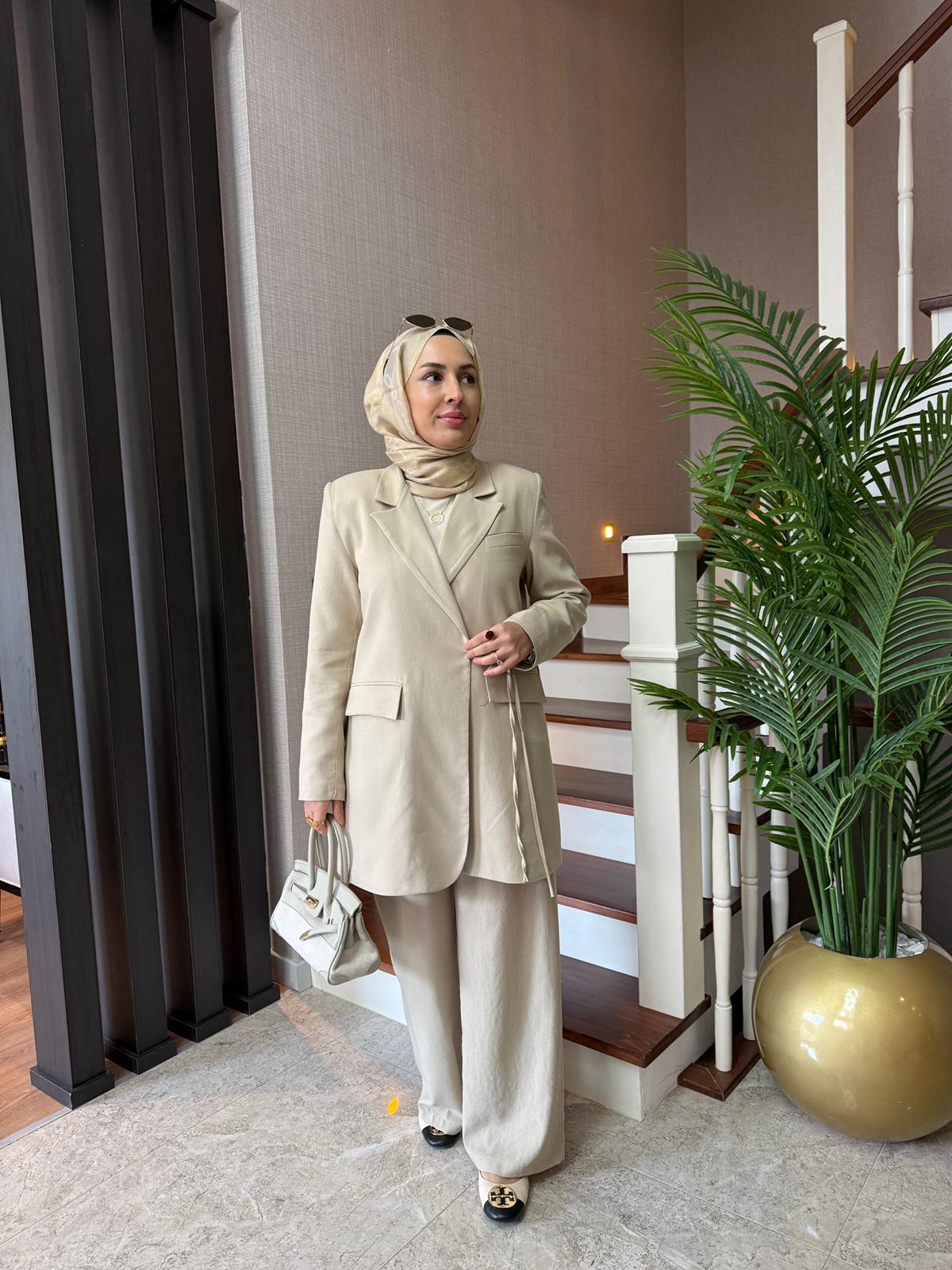 Kruvaze Ceket Takım Bej