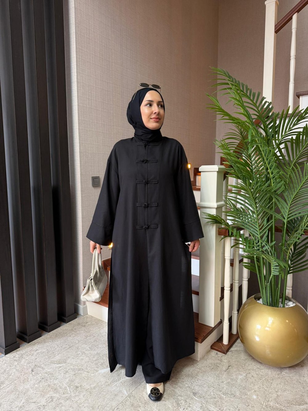 Kap boy 135 cm’dir. Önü el işi düğme detaylıdır.