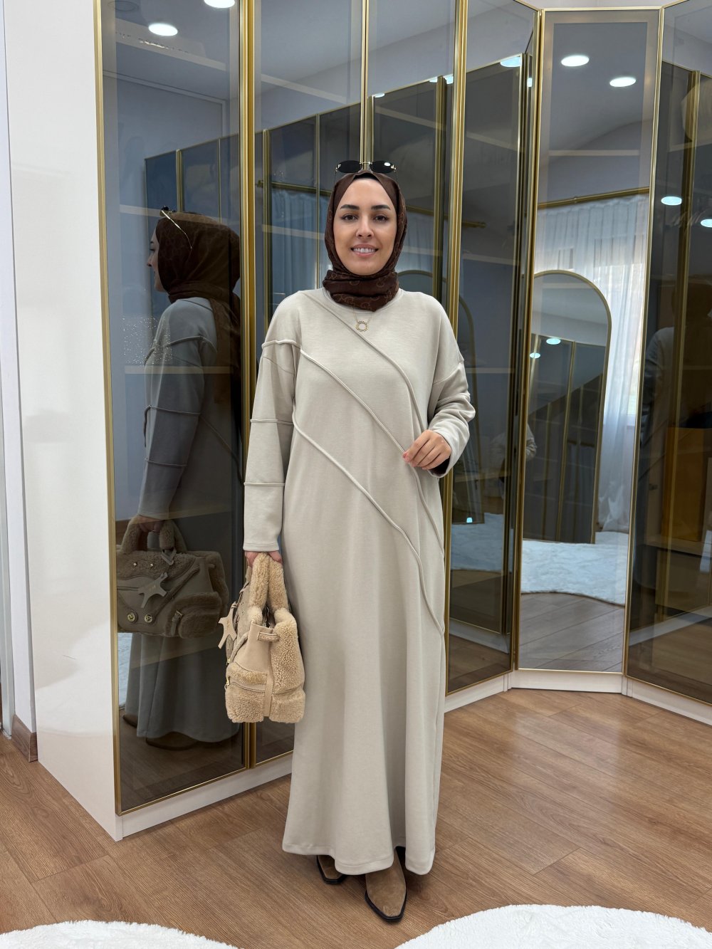 Nervür Detaylı Oysho Elbise Bej
