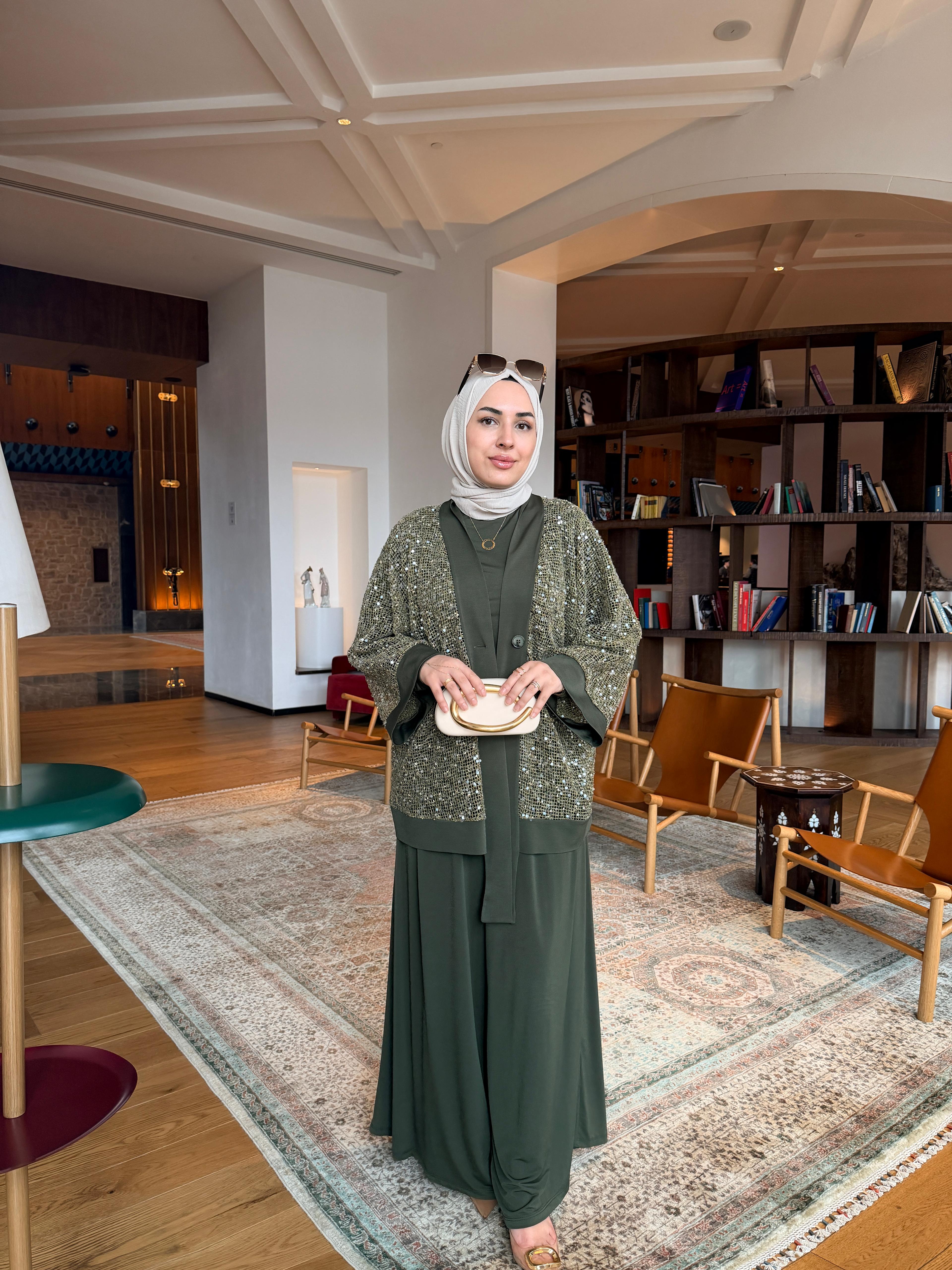 Payetli Üçlü Takım Haki