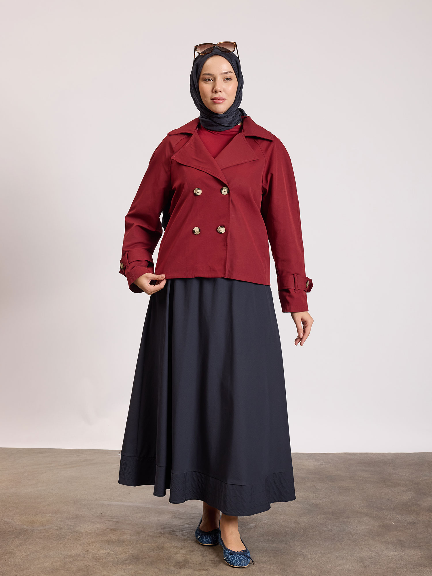 Reglan kol Kısa Trençkot Bordo