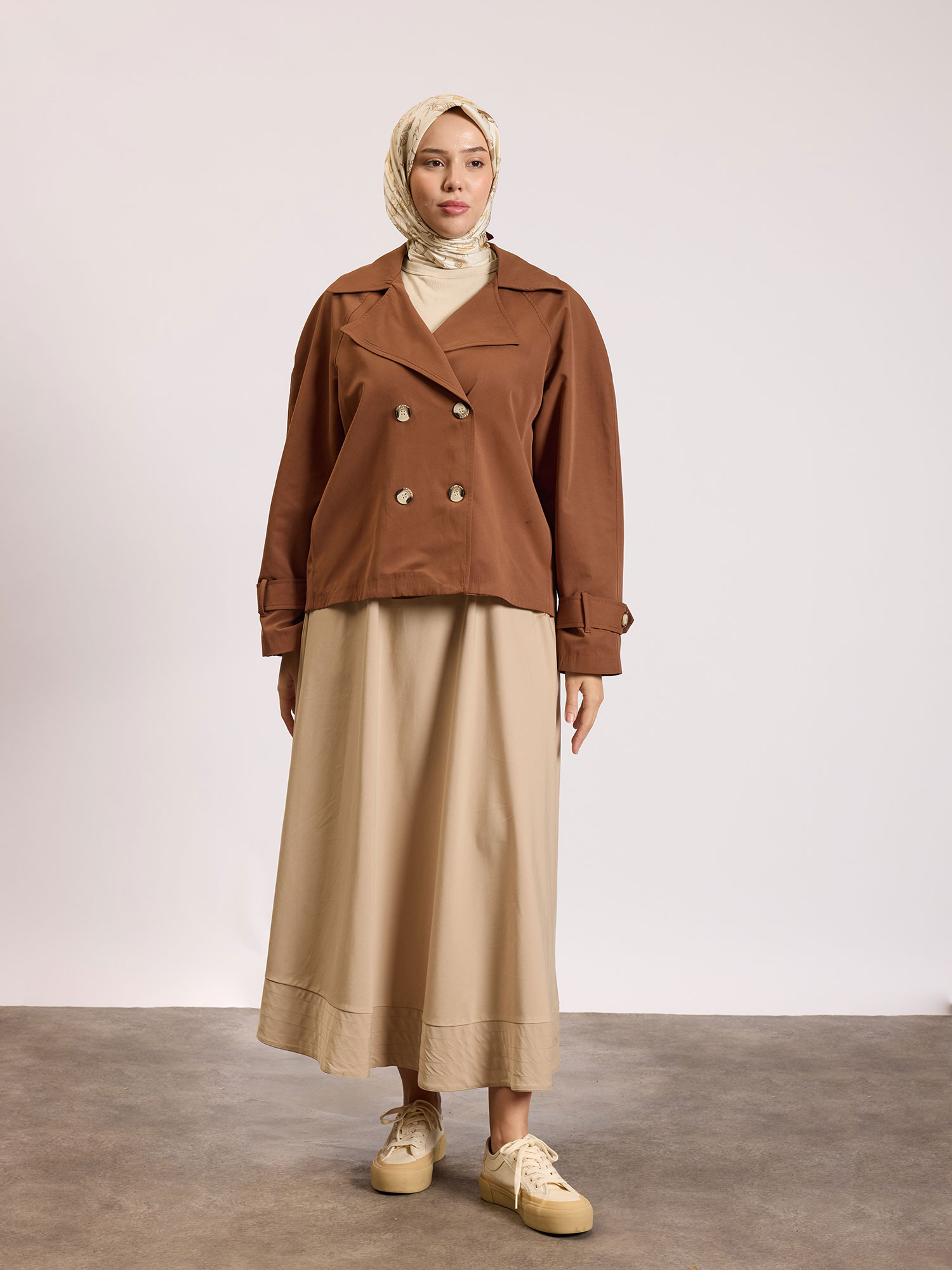 Reglan kol Kısa Trençkot Camel