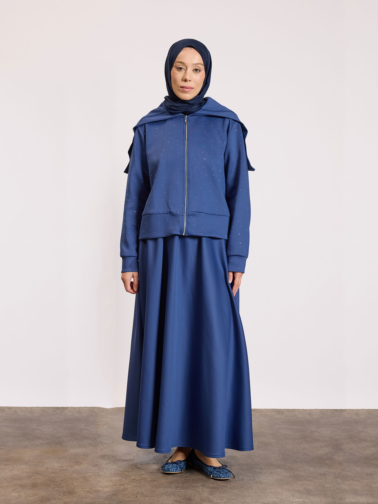 Scuba Taşlı Takım İndigo