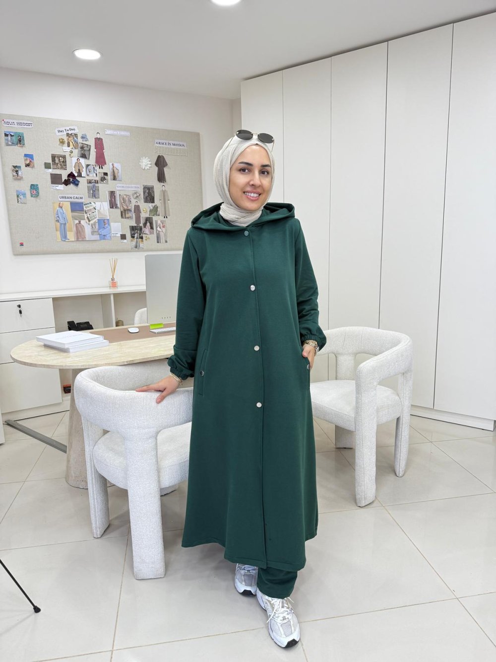 Uzun Kapüşonlu İkiiplik Takım Zümrüt