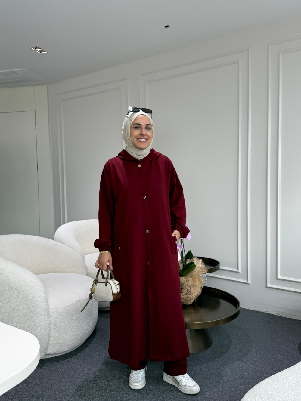 Uzun Kapüşonlu İkiiplik Takım Bordo