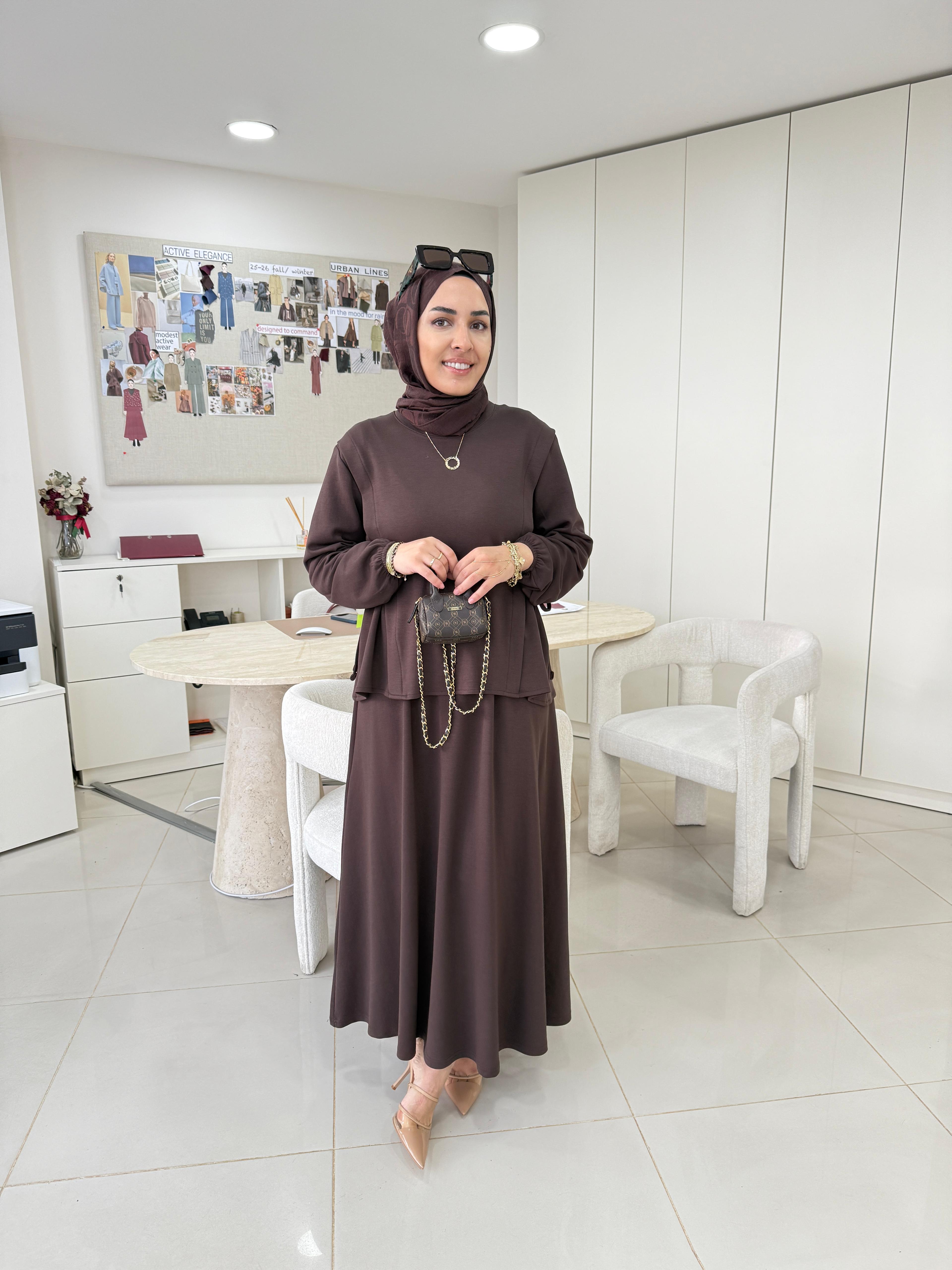 Yandan Büzgülü Oysho Etekli Takım Kahverengi